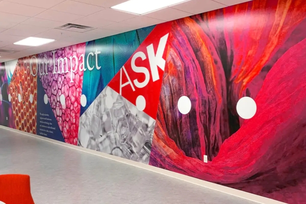 Wall graphics transform plain walls into visually engaging branding spaces. They use high-quality prints to showcase designs, messages, or artwork that enhance the overall ambience of any environment.